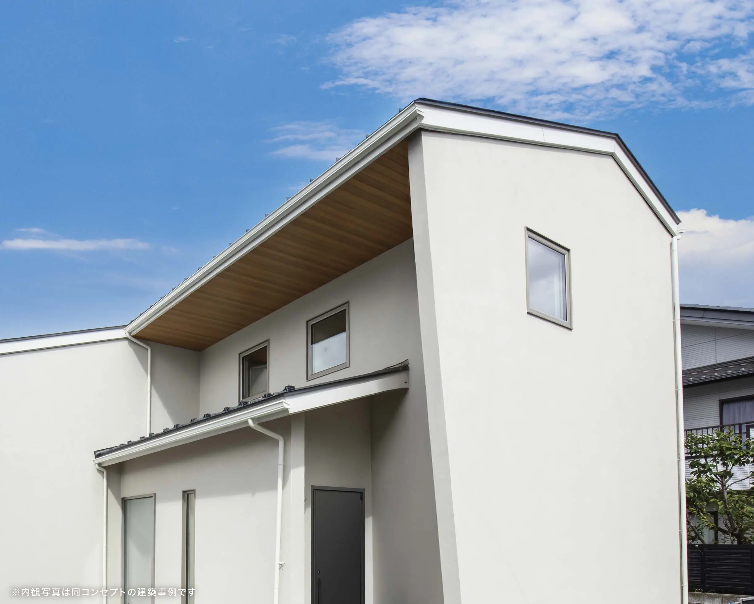 「深い軒」と「斜め壁」でプライバシーを確保しながら視覚的な広がりと開放感を追求しました。極めて高い耐震性に断熱性も備えた、安心の住まい。生活しやすい動線設計にもこだわり、ご家族皆さまで長く快適にお過ごしいただけます。ぜひお披露目会場で実際にご体感ください。